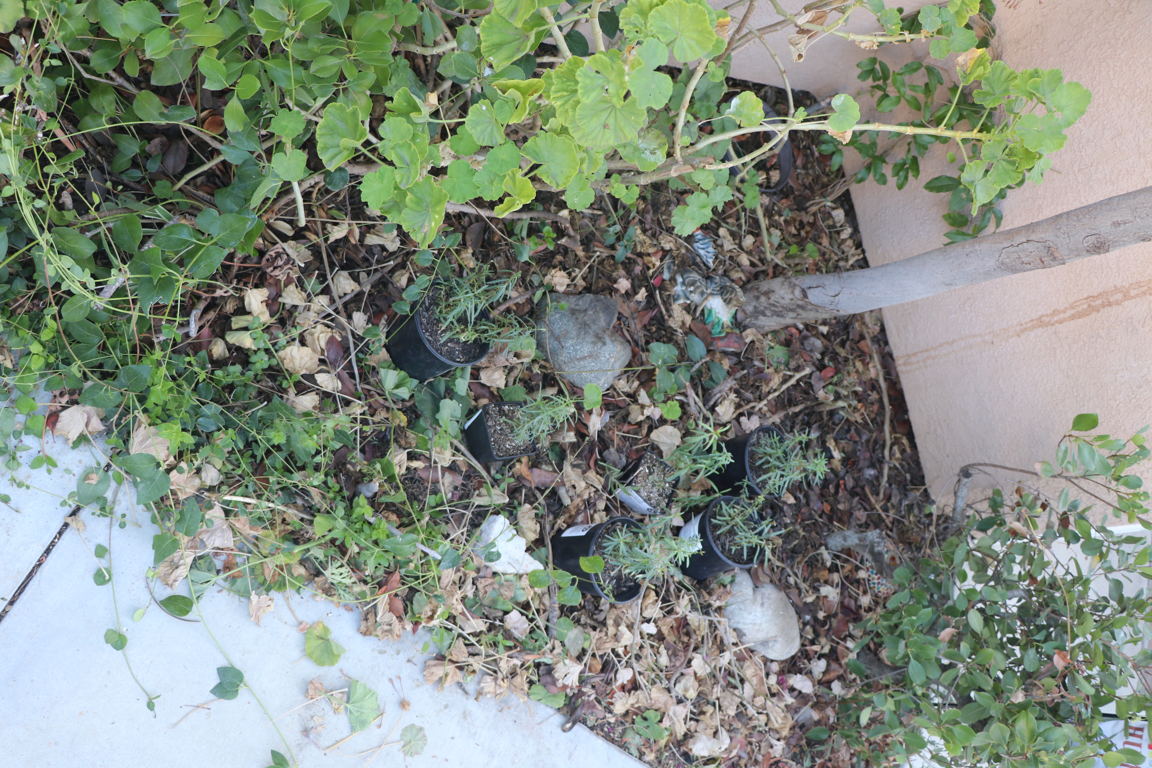 finally cooling off! time to get some plants in the ground. after a few weeks of hot weather and procrastination, it looks like the complex's landscapers mostly finished the cleanup job... saved me the effort i guess. i still had to hack away at some more begonia and geranium tubers, i did find a couple of the bulbs so hopefully those won't come back. sorry to the worms i accidentally chopped up while i was at it :( we hit up the theodore payne fall sale and got almost everything i wanted and more! we got the lilac verbena and little buckwheat, as well as more narrowleaf milkweed because the fucking rats ate everything i put out on the ground?!? oh my god. i think they killed themselves doing it, milkweed is toxic and they ate a *lot* of it (4 1-gallon sized plants and 2 4-inches! $70 worth!! to the stems!!!) and i haven't seen them around since. even my little terriers can't flush them out like usual. suicidal behavior, they gorge themselves on birdfeed all the time and they go for a poison plant??? okay. most of the damaged plants are bouncing back, it rained soon after they were ravaged which helped. i'm nursing them a little further before they go in ground. we got a kotolo milkweed to see if that one is less attractive to eat for the rats, it's still a monarch host and it's another native species in my specific area, and i think it's even more toxic than narrowleaf. my mom picked out a big jellybean dark pink monkeyflower, i think i'm gonna keep that potted since the jellybean orange is actually doing quite well. the dormant phase scared me but it's been churning out new leaves and looking nice and healthy. hopefully it'll grow tons of flowers in the spring! they didn't have any ferns at all left, so i decided on a sea lavender to try out in the back corner. what a cool plant! maybe it won't do well but since it'll get plenty of water and the willowy monardella is also coastal and doing well, i thought i'd try. i also kinda wanted more of that, it's really doing wonderfully and it's my favorite, it's flowering (i thought it was out of season but this subspecies blooms during our late summer! the joy of natives) and getting huge if a bit leggy at the base, but they were out of it too. i'm actually glad we snagged it when we did, i haven't seen anyone have it in stock since, even online! i think maybe ours might want some more acid in the soil, or maybe a little more water. i'm gonna try misting the coastals more often as if there was fog. finally, we got a couple packets of narrowleaf and kotolo milkweed seed for springtime and a ton of poppy seeds in various colors. it's gonna rain soon so i sprinkled those outside already to hopefully get them going! i might be a little evil and go sprinkle them in other sad clay parts of the landscaping in the complex hehe >:) nowhere unmanaged, it won't hurt anything. i planted the new milkweed, the old one that was not thriving at all in the big pot (maybe bc aphids, maybe too much sun), the lilac verbena, and the buckwheat yesterday. i need to go clear out the last few begonias and vines before i plant the regrowing milkweeds and the sea lavender. it's tough work! i'll plant the big monkeyflower in the pot once i get more sand, the mix in it now won't drain well enough for it. maybe later this week.